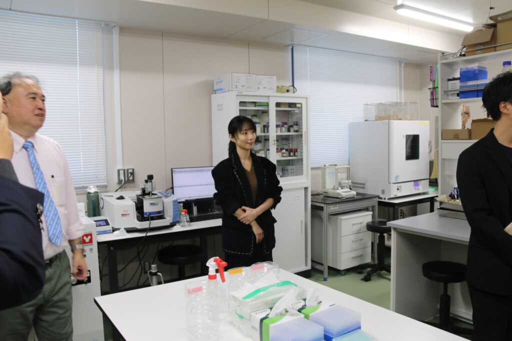 MEGUMIさんはモデルや女優としてご活躍する中、自身でスキンケアブランド「Aurelie./オレリー」を立ち上げられており、そのつながりで令和8年4月から開設される佐賀大学コスメティックサイエンス学環に興味を持たれ、今回の視察へとつながりました。